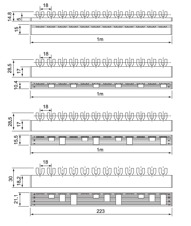 Busbar of pin type and fork type ensures reliable and efficient terminal connection to MCB,RCCB and other modular electric devices.